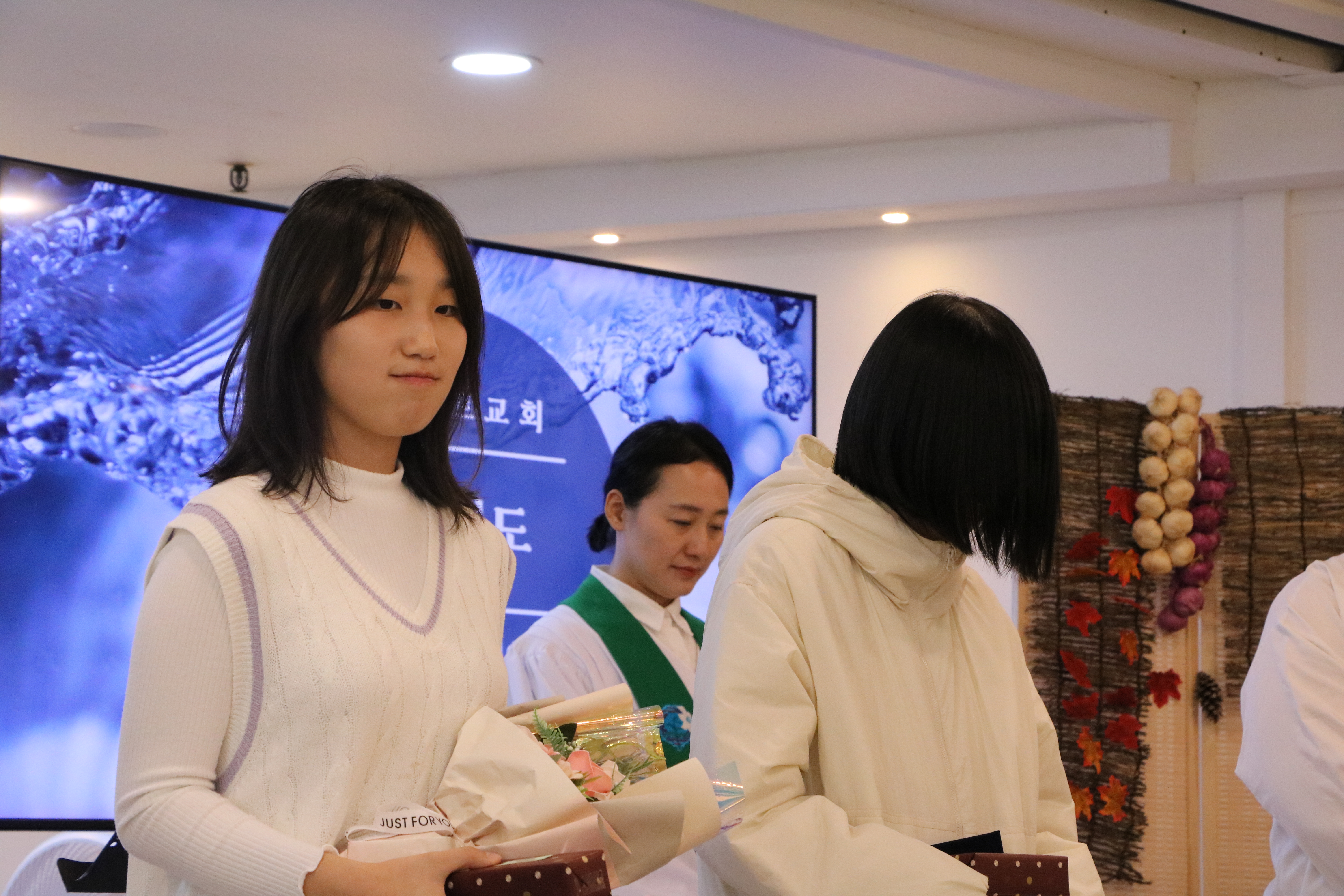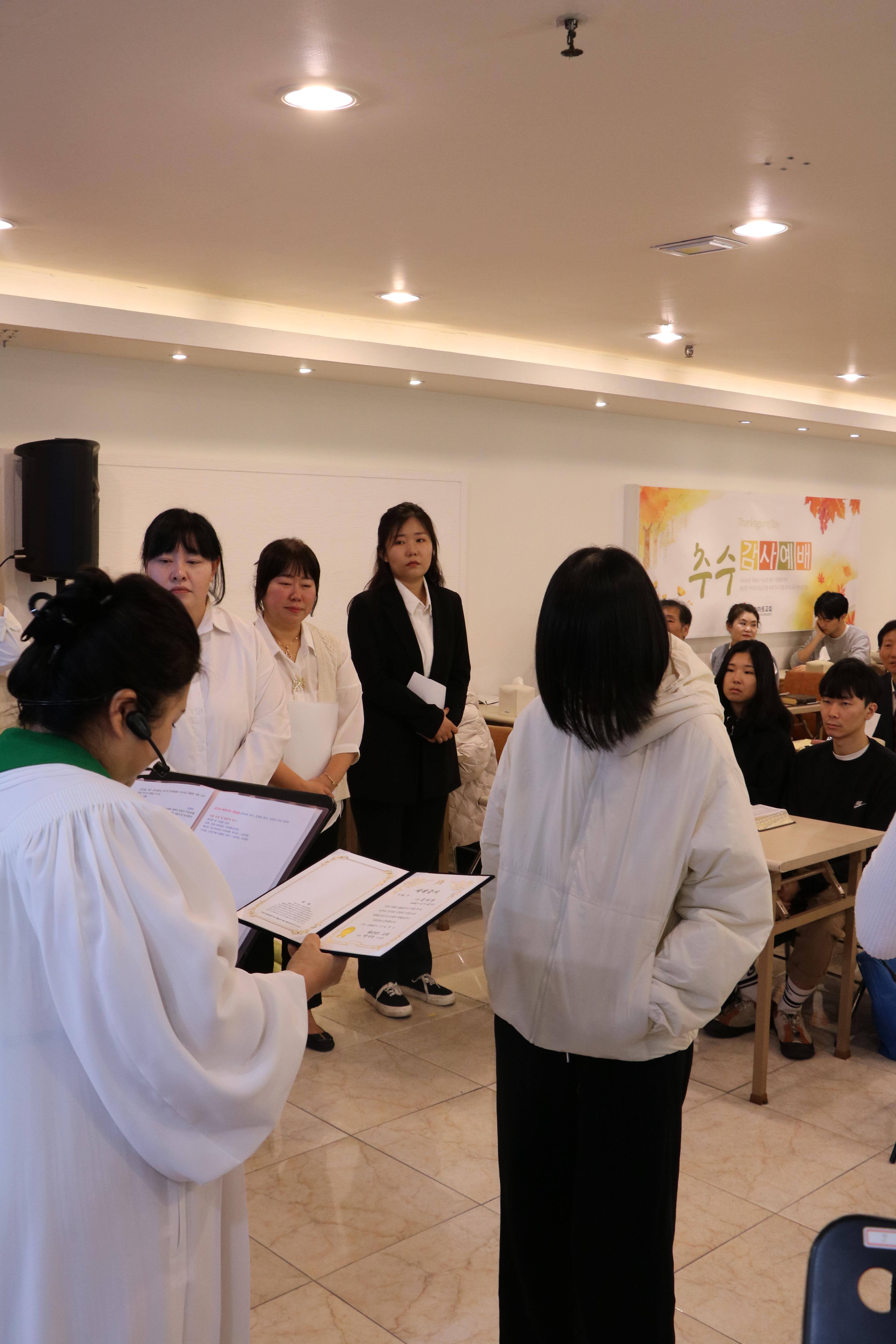 2025년 11월9일 추수감사주일, 김미영 학생의 견신예전과 이수정 학생의 세례예식이 거행되었습니다.